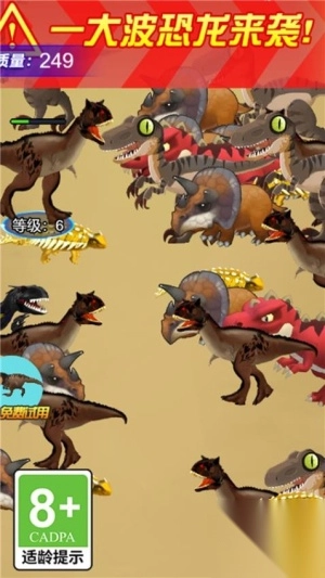 2、真实生物链设计,不同体型的恐龙存在克制关系。小型恐龙依靠速度周旋,大型恐龙则凭借力量碾压。