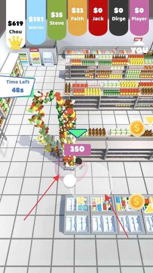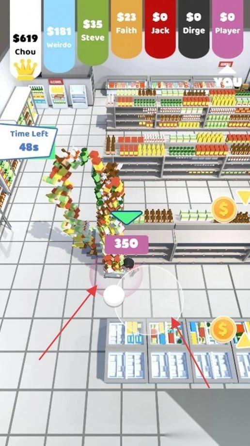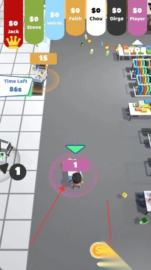 2、角色技能与道具系统:每个角色拥有独特技能,如加速移动、透视价格、冻结时间等,超市中随机出现购物车加速器、价格放大镜等道具,合理利用可提升效率。