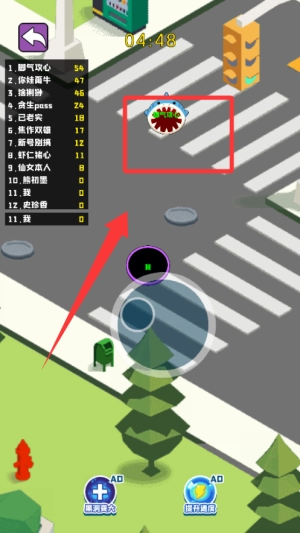 1、基础操作简单直观,单指滑动控制移动方向,自动吞噬范围内物品。长按屏幕可短暂加速,关键时刻用于逃脱或追击。