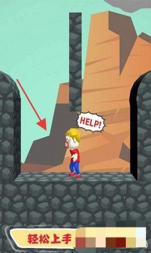 2、在石墙场景,点击屏幕指引角色方向,穿过通道,避开落石等危险。