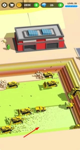 1. 进入游戏后,挑选关卡。按照任务提示,选择适配的车辆,比如在沙漠关卡选用越野挖掘机。接着点击场景,开始挖掘指定区域的土方。