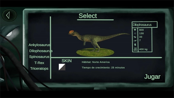 2、点击play后可以选择不同的恐龙,有五种不同的恐龙可以选择。