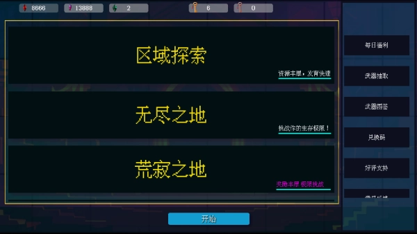 3、游戏有多重玩法模式,包括区域探索、无尽之地、荒寂之地,还有挑战BOSS,难度越高,奖励就越丰富。