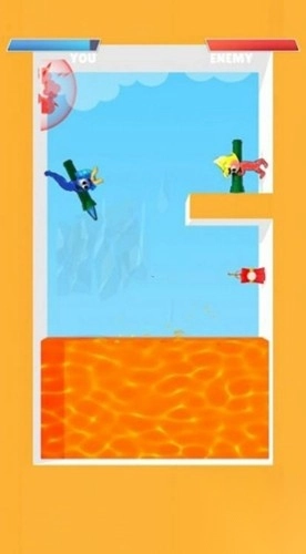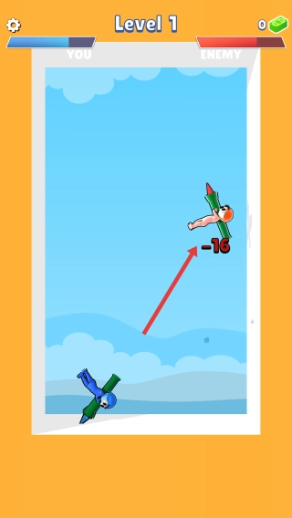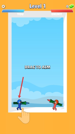 1. 拖动瞄准操作:长按蓝色角色,通过拖动画线的方式对准红色敌人,随后松开手指即可触发弹射攻击。