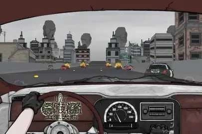 1、当玩家驾驶车辆在满是废弃车辆与路障的城市里穿梭时,还得留意会冲到车上的僵尸。