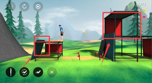 1游戏开始后,首先要熟悉操作。操作方式为:左侧控制移动方向,右侧控制跳跃与翻转。