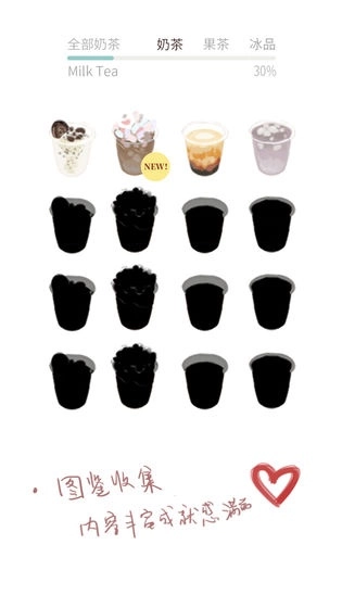 1. 在奶茶图鉴页面,点击“MilkTea”等类别,收集并解锁不同的奶茶配方,让图鉴更加完整。