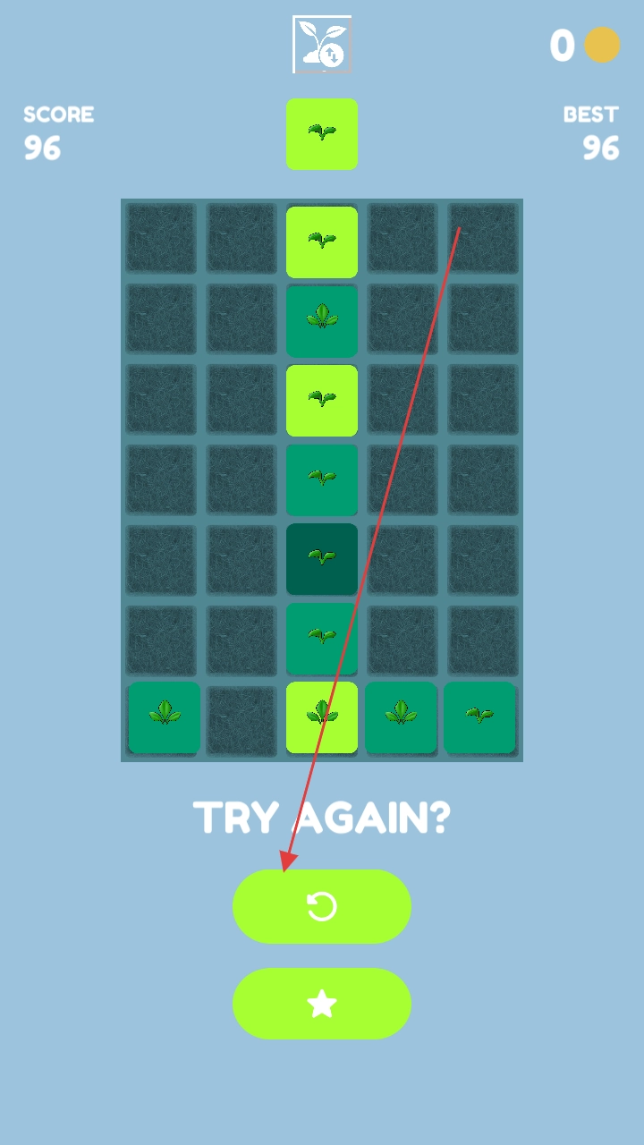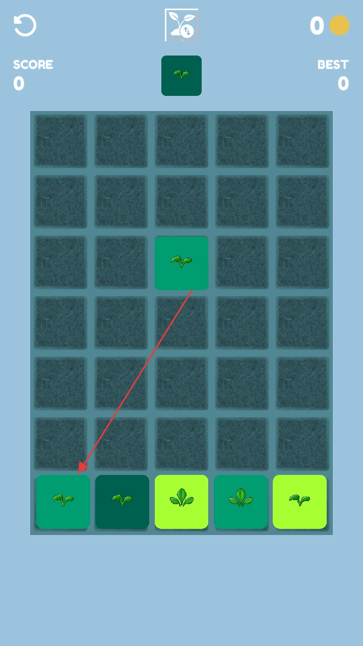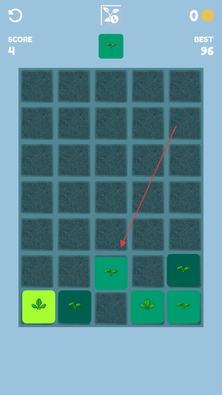 2、相同阶段植物相邻可合并,升级为更高阶段,积累分数,挑战“BEST”纪录。