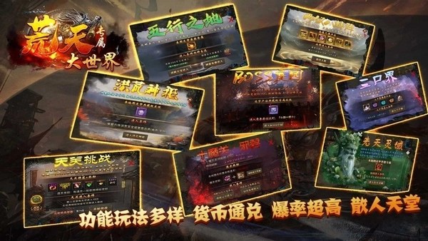 荒天专属大世界是一款以复古风格打造的传奇类游戏。进入游戏,玩家需先挑选心仪的传奇英雄,随后在这充满挑战的游戏天地里展开热血对战。游戏融入了丰富多元的PVP与PVE等作战元素,还支持在线、离线挂机升级,能开启自动打怪功能,助力玩家提升角色战斗等级。玩家可勇敢地挑战各类副本任务,赢取丰厚奖励。