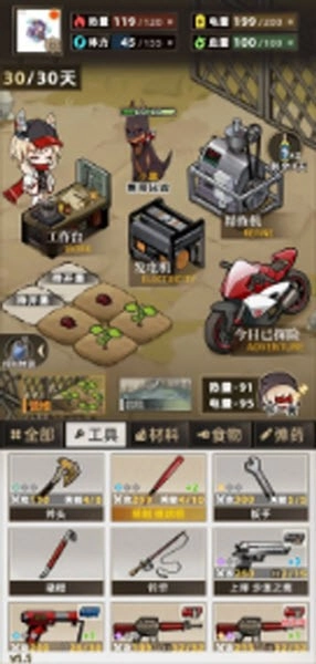 3、最后吃吃喝喝打打怪结束,15关之后一定要先推图再干杂物,尸潮体力不够跑不掉只能等死,狗可以重置生命上限。