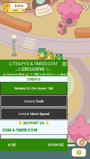 4、支持自由设计梦幻场景布置,从装饰到布局均可自定义,打造属于玩家个人风格的青蛙主题餐厅。