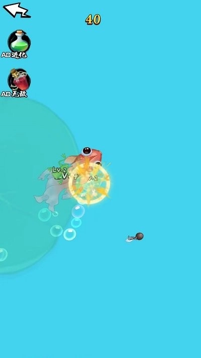 1、核心玩法采用触屏操控,通过滑动控制游动方向,长按加速冲刺,简单直观的操作方式。