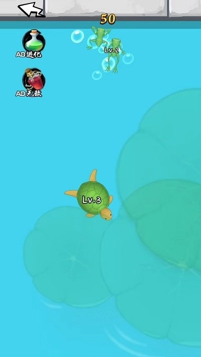 2、一开始你是一只小蝌蚪,你需要找到同类,三只一样的就可以合成青蛙。