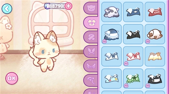 4、有600多件散件供玩家自由搭配,为小猫创造最可爱、最时尚的造型。