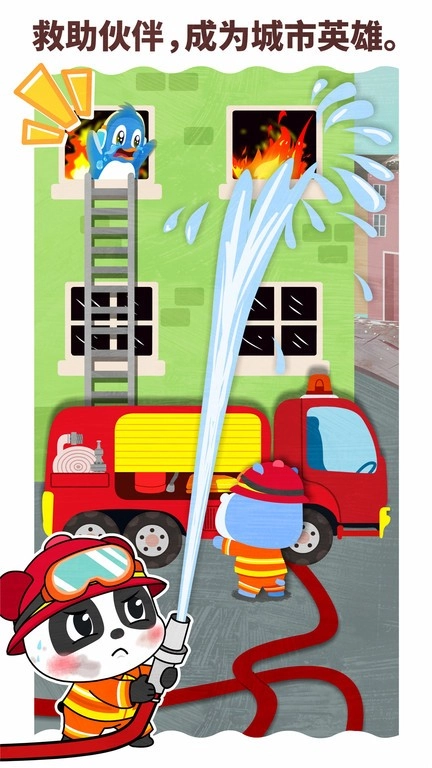 驾驶消防车,扑灭民宅大火,拯救被困的小伙伴;