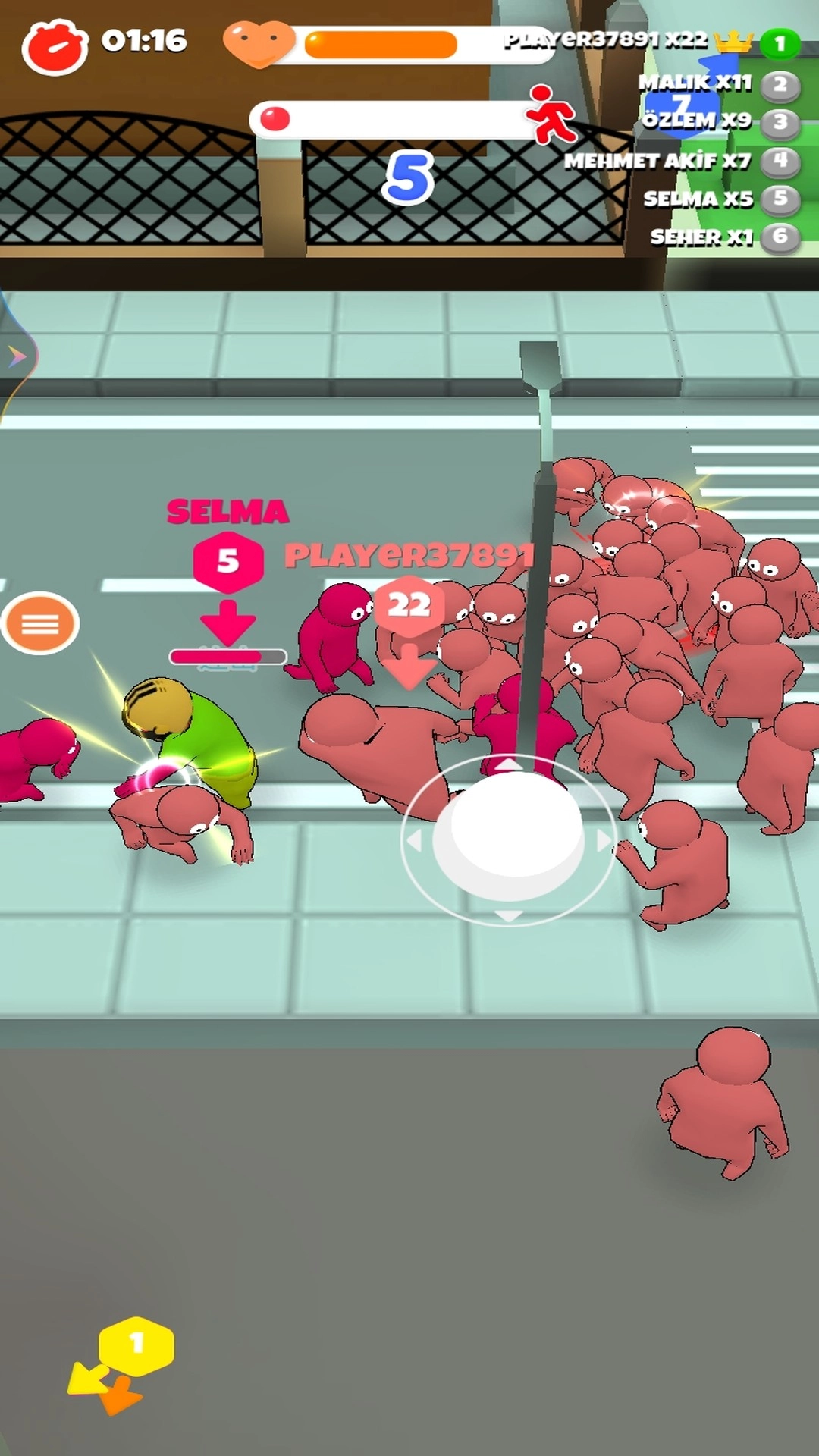 3、关卡中随机刷新各种特殊道具,如能让人群瞬间加速的跑鞋、增加攻击力的能量饮料等,改变战斗局势。