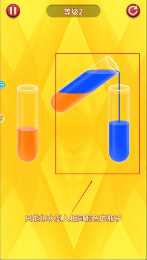 3、试管容量有限制,转移时要注意保留足够空间,避免液体溢出导致失败。这个设计增加了策略深度,不能简单堆砌移动。