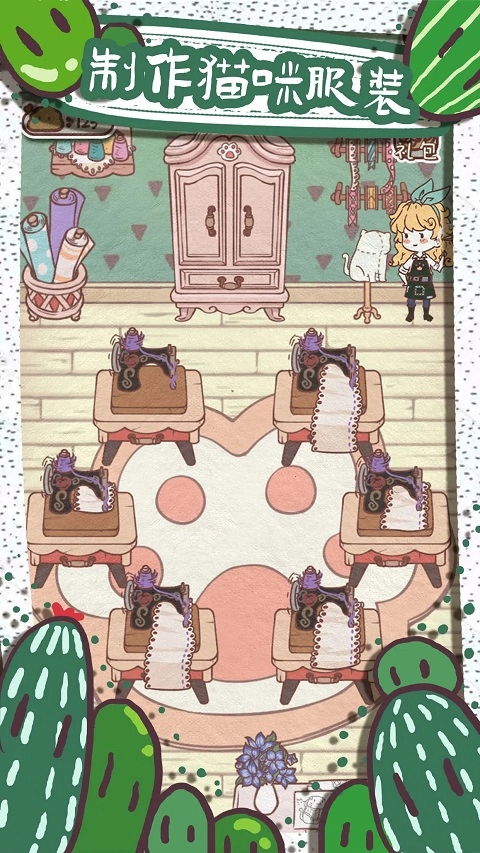 制作猫咪服装并出售,赚取小鱼干升级店铺,经营属于你的猫舍。