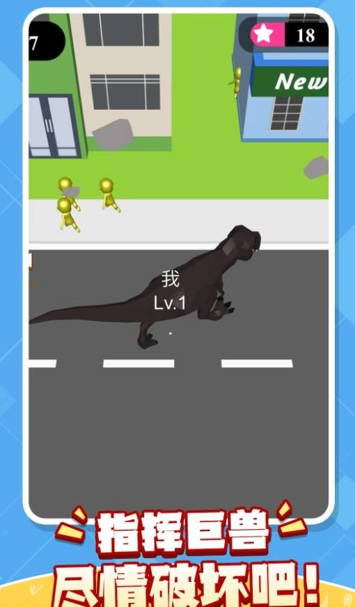 1、以操控恐龙摧毁城市为核心玩法,融合凶萌卡通形象与毁灭快感,定位解压向休闲体验。