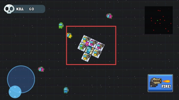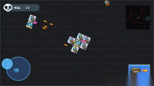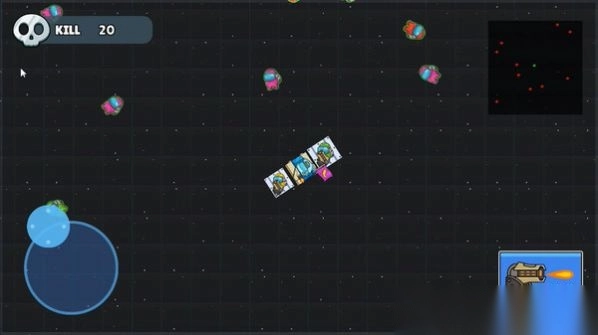2、战斗时,操控飞船,用右下角【FIRE!】射击,集火彩色敌人,关注【KILL】数,推进战局。