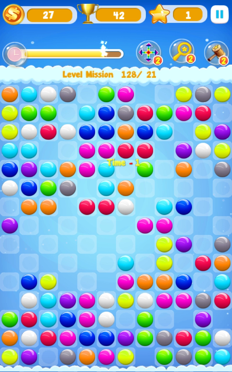 4.每一局游戏都有限定的时间限制,抓紧时间消除更多的球球吧。