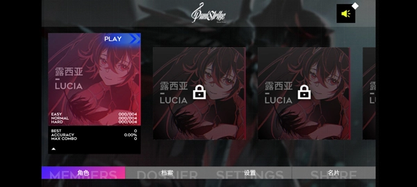 2、进入游戏界面,可以看到游戏内拥有角色、档案、设置、名片四个版块;