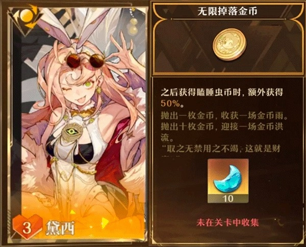 【无限掉落金币】:个人强烈推荐,尤其【暴富之梦黛西】还有个回响是根据瞌睡虫币提升伤害的,即使不点这个回响,也是大赚。