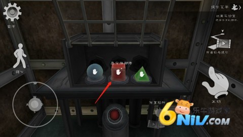 4、探索时留意按钮机械装置,把白点对准红色按钮,点击互动手势。