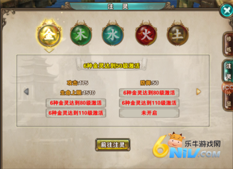 注灵功能也在你达到修炼等级后开启,你可以为角色提供更强的五行属性。