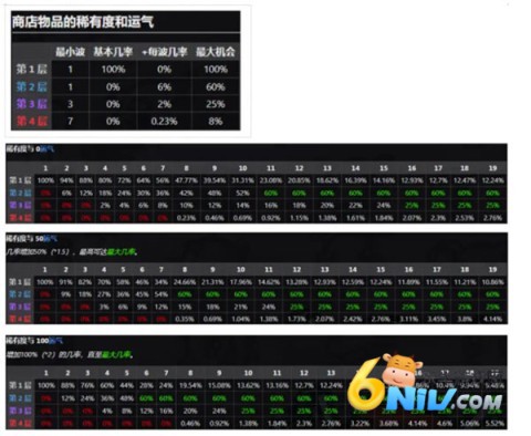 ⑥ 幸运属性较为复杂,它的核心是乘算机制,商店道具随回合数逐渐提升,但不超过最大值。对非“幸运儿”角色,建议把值堆在0-50-100之间,高幸运能提升商店刷新高品质道具和武器,帮助你更轻松通关。如果你运气好,请忽略此建议。以下是相关数据: