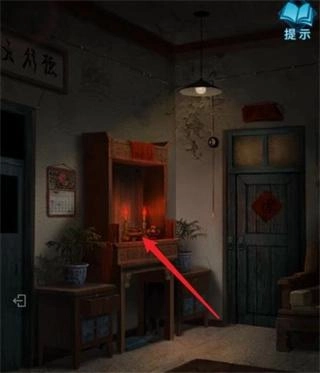 8、返回客厅,点击神龛右边的柜子,使用【钥匙】打开柜子,得到【老虎钳】。