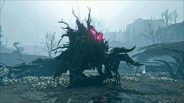 寄宿在巨楔BL155E里的孽生妖树,出现在一个像是2046年神秘消失的萨莫维尔镇的空间残影中。环境表面看起来挺安静,但会偶尔出现重力紊乱。虽然它行动慢,但会聚集星尘能量变成藤蔓,攻击范围大又狠,特别是背后那个人形结构,常被忽略却极具威胁,不能放松警惕。
