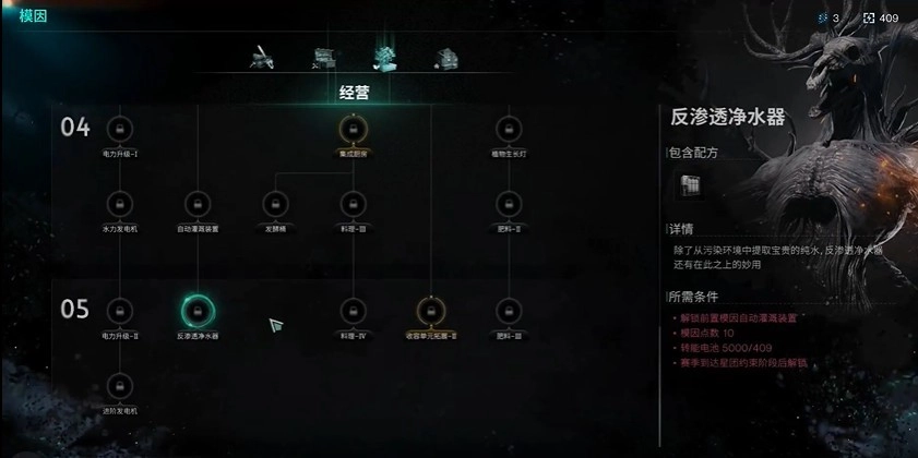 3、经营类:发电系统、净水装置、食物发酵、扩建模块都建议点满,日常运作会轻松很多;肥料系统点到2级基本够用了。
