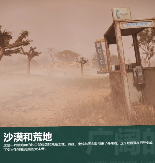 1、玩家身处污染严重的荒野中,需靠谨慎行动和资源利用维持生存。