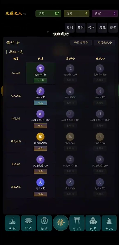 1. 游戏中设置了多种修仙副本,像宗门副本、秘境副本、天道副本等,玩家若挑战成功,便能获得稀有资源作为奖励。