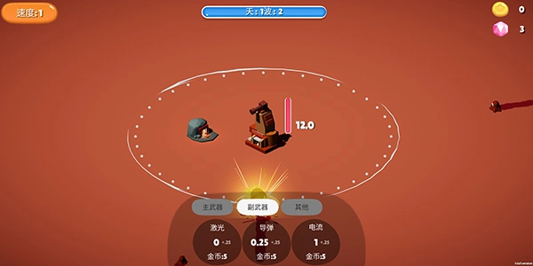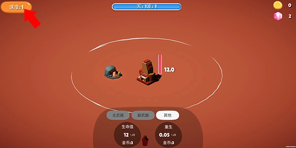 游戏下方区域分别为主武器、副武器与属性升级区,点击对应图标即可为其升级。