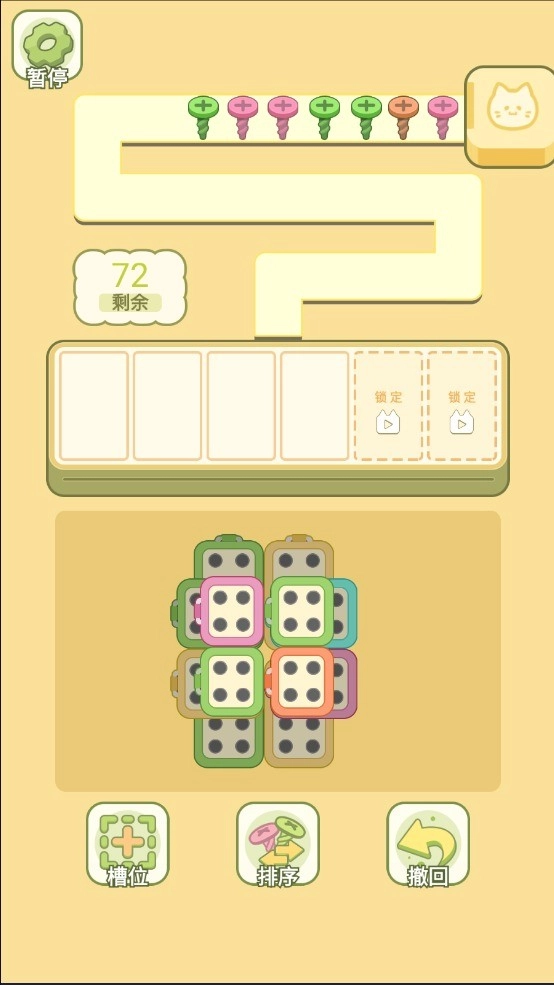 1、在螺丝拼图关卡中,玩家需借助四消机制来通关,于关卡内通过消除相同元素以收集目标物品。