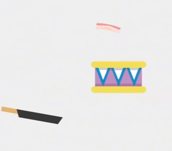 2、调整锅的倾斜角度,控制培根的飞行轨迹,确保它能成功贴合目标。