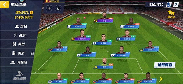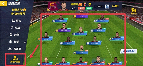 4、在关卡挑战可以根据不同的阵容切换不同的球员。