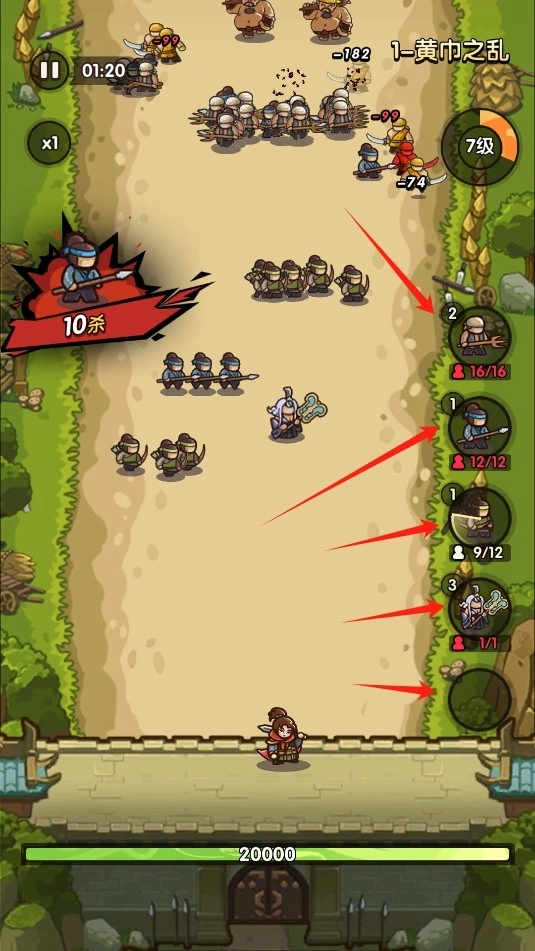 2、每座防御塔攻击方式各异,搭配拥有技能的武将,打造独特战术体系。