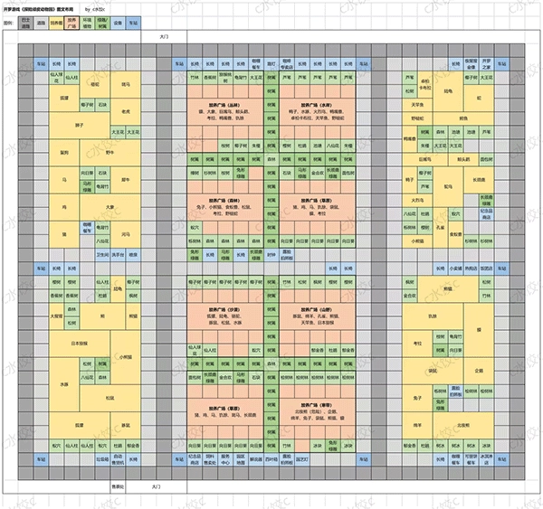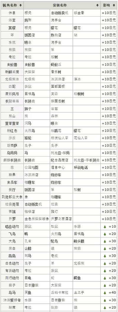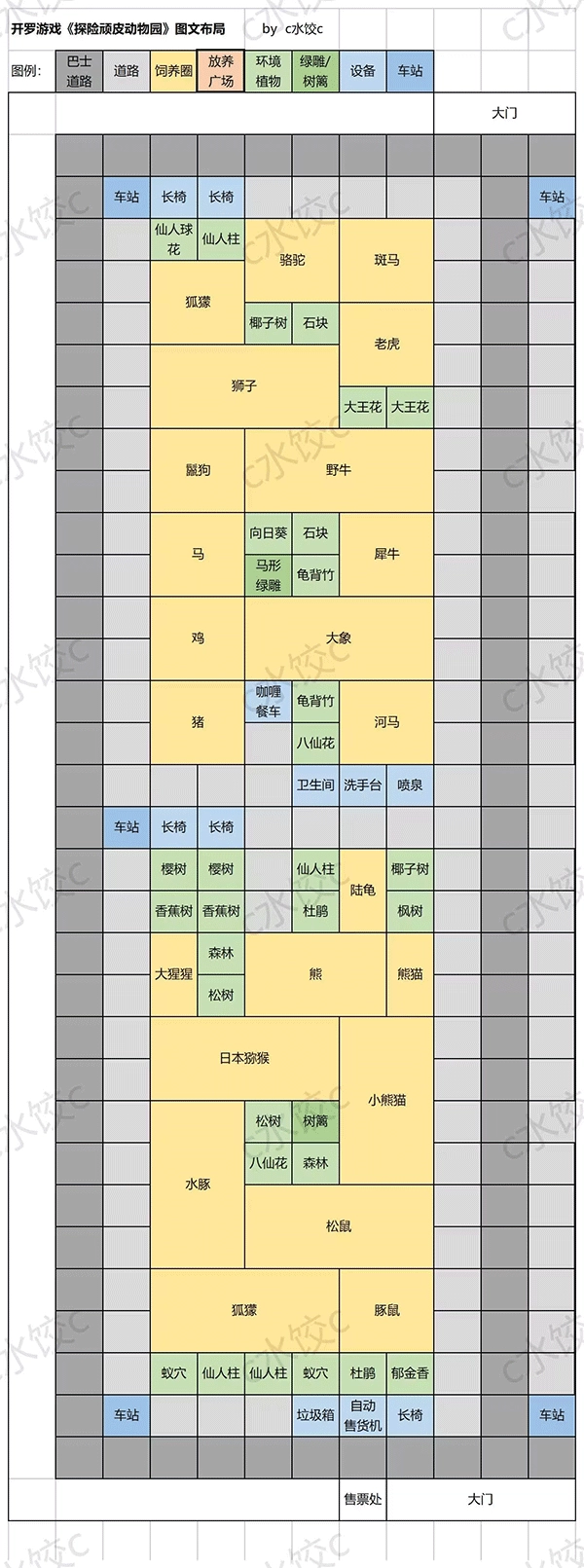 表格图_右:后期高人气动物布置与巴士交通线设置