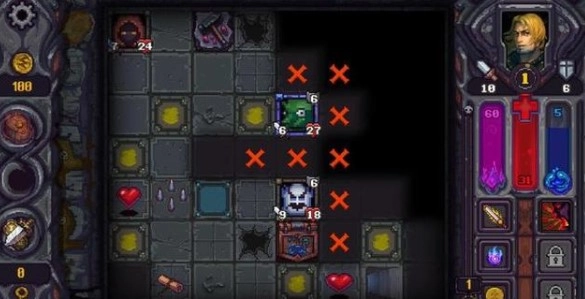 初始角色盖伊:这个角色的定位是个战士,但是因为初始力量和敏捷都比较均衡,所以力量和敏捷都可以点,就看个人喜好了(如果你想点智力,让他执杖,我也拦不住你)。这个角色的自带技能在前期是非常好用的(具体效果自己看说明),经常能把怪降到1攻(最低降到1),但是一旦到了中后期就很无力了,在所有怪攻击都在20以上,你有不敢乱翻格子的情况下,这个技能基本降不了多少攻。角色被动么,个人觉得还凑合,但实际上也回不了太多的血,不过聊胜于无嘛。总体来说盖伊作为初始角色用来过渡前期还是很不错的。
