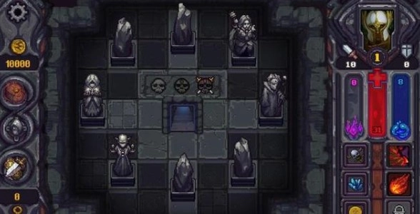 ③尸人(名字忘了,反正就是那个一身黑的大叔):被动很不错,前十层基本平推。定位是战士,初始技能消耗3蓝,效果是对全场怪造成攻击力一半的伤害。个人觉得这个技能还是很鸡肋的,层数高了之后,如果一次翻开的怪太多,可能就直接翻车了,而且即使攻击力上去了技能伤害也并不可观。这个角色初始力量非常高,初始血量也非常高(记得有100+),可惜耐力极低,只有1,所以前期建议不急着点力量,可以点几下耐力。这个角色信仰复仇之神或者战神的话,前十五层基本压力不大,之后就要看装备道具还有脸了。 玩任何角色都不要吝啬放自己的技能,该放的时候就放。