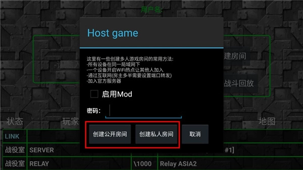5、输入密码,点击创建房间将密码告诉好友,等待好友加入即可。