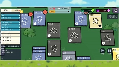 3. 页面左侧设有多个任务,例如击碎一块岩石,要记得完成这些任务,而且下方还有加速功能。