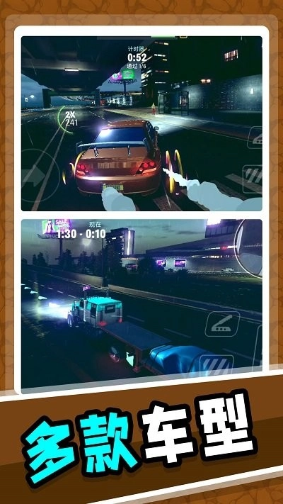 2、多样化的竞速任务:从简单的时间赛到复杂的障碍赛,每个任务都需要玩家运用技巧与策略;