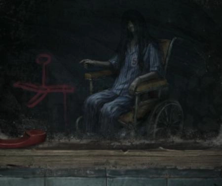 11、前往走廊,使用【剪刀】剪下娃娃身上的【鱼线】,把【鱼线】一起交给她,触发剧情(人偶被吊起来了,后面的柜子门打开了)。