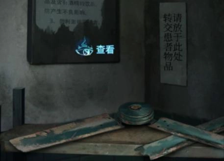 13、前往保管柜处,用钥匙打开57号柜子,获得【照片】,走到走廊左侧的房门前,将【照片】贴在窗子上与内部空遗照对应的位置,然后把道具移动到箭头提示对应的位置就可以打开门了。