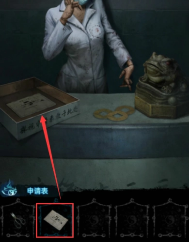 15、把【工牌】放到肖医生的病例表(病例表在床头柜子底下),获得探视31号患者的【申请表】,把它放到前台的收集处。