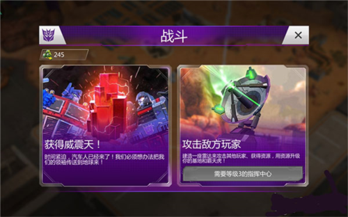2、选择阵营:汽车人or霸天虎两大阵营任你选!建造、巩固基地,抵御外侵。